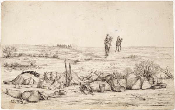 Ludwig Becker, the expedition’s naturalist, was a talented artist. He would produce dozens of wonderful drawings and sketches during his time with the VEE. Below are a few of those. You can see all the drawings online at the State Library of Victoria.