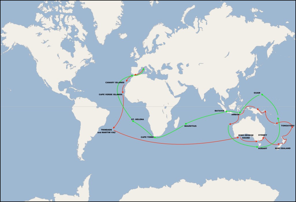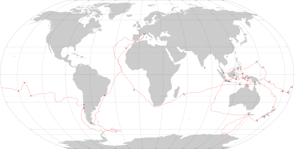 Click on the map to get a detailed look at the 2nd Voyage of the Astrolabe. This map is an incredible piece of work from Wikipedia. Here is the source. I recommend looking at it as it details all the exact locations on the map. Incredibly well done map.