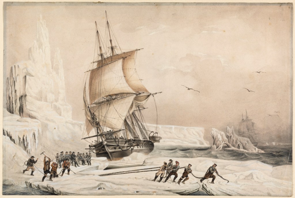 I love this image of the Astrolabe in Antarctica 1838. Image source and details.