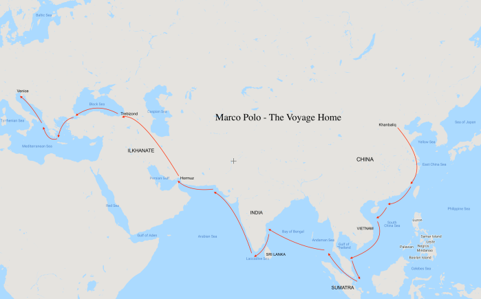 In our final episode on explorer Marco Polo, we take the Venetian merchant on one last mission for Kublai Khan. Marco – along with his father and uncle – were tasked with escorting a princess to Persia. The resulting mission will take the Polos – by ship – to Vietnam, Malaysia, Indonesia, India, and – finally – home. It will complete an epic 24 year, 15,000+ mile journey.