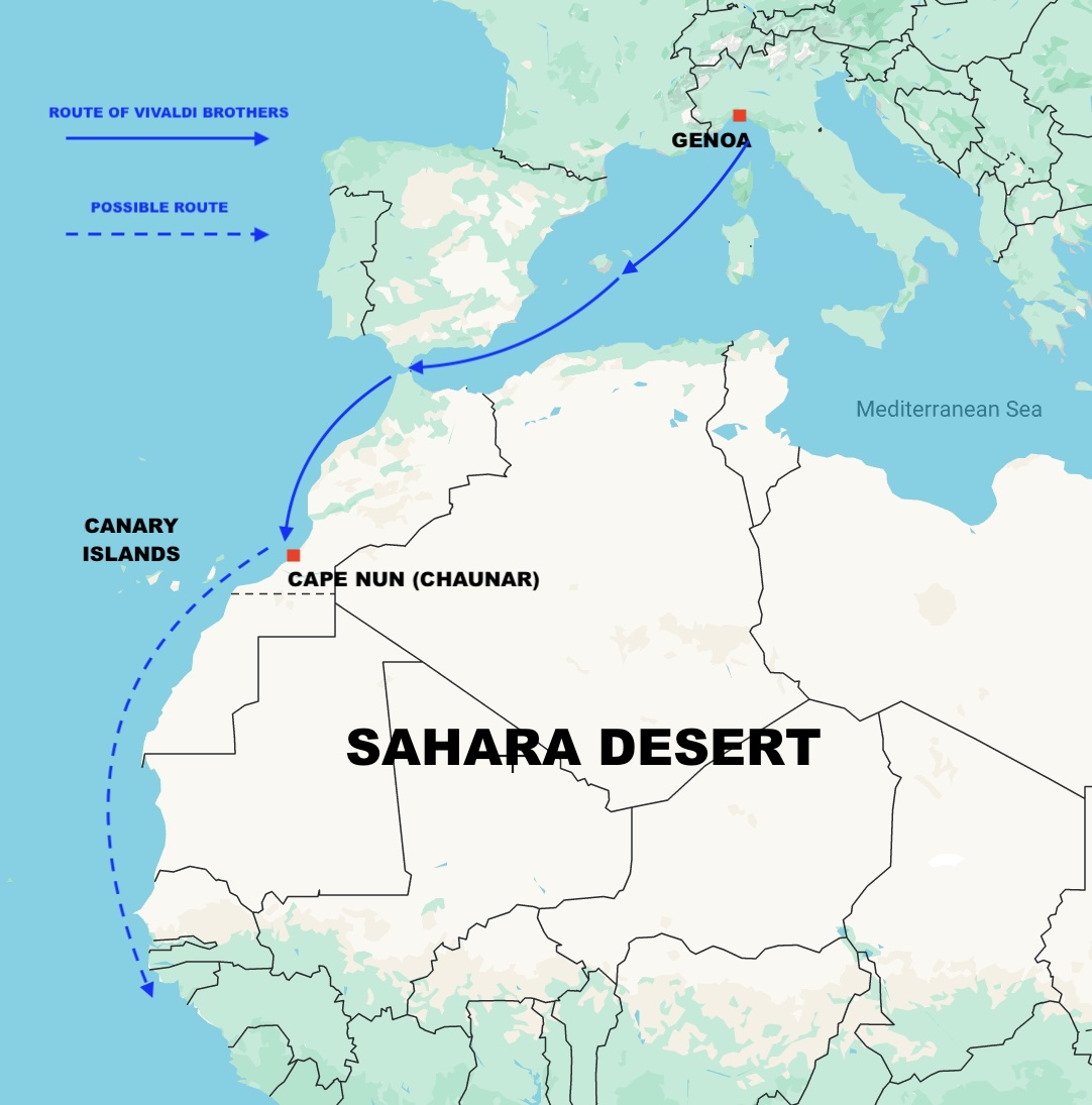 In 1291, two Genoese brothers, Vandino and Ugolino Vivaldi, led the first known attempt to sail from Europe to India by going around the southern tip of Africa. The attempt – which failed – would generate rumors and speculation for hundreds of years.