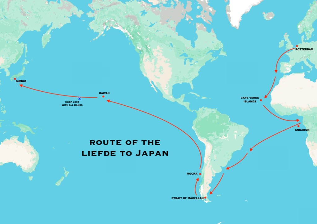 A Dutch East India Company fleet sails to South America – with William Adams as a pilot – with the intention of plundering Spanish treasure ships and heading to Asia. Only of those ships – led by Adams – will reach Japan. This is the story of the harrowing journey from Europe to Asia.
